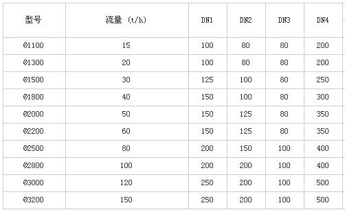 重力式無閥過濾器相關(guān)尺寸表